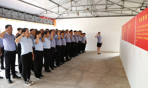 老党员和纳新转正的预备党员一起面对党旗,庄严宣誓,共同重温入党誓词,追寻入党初心,勇担时代使命。